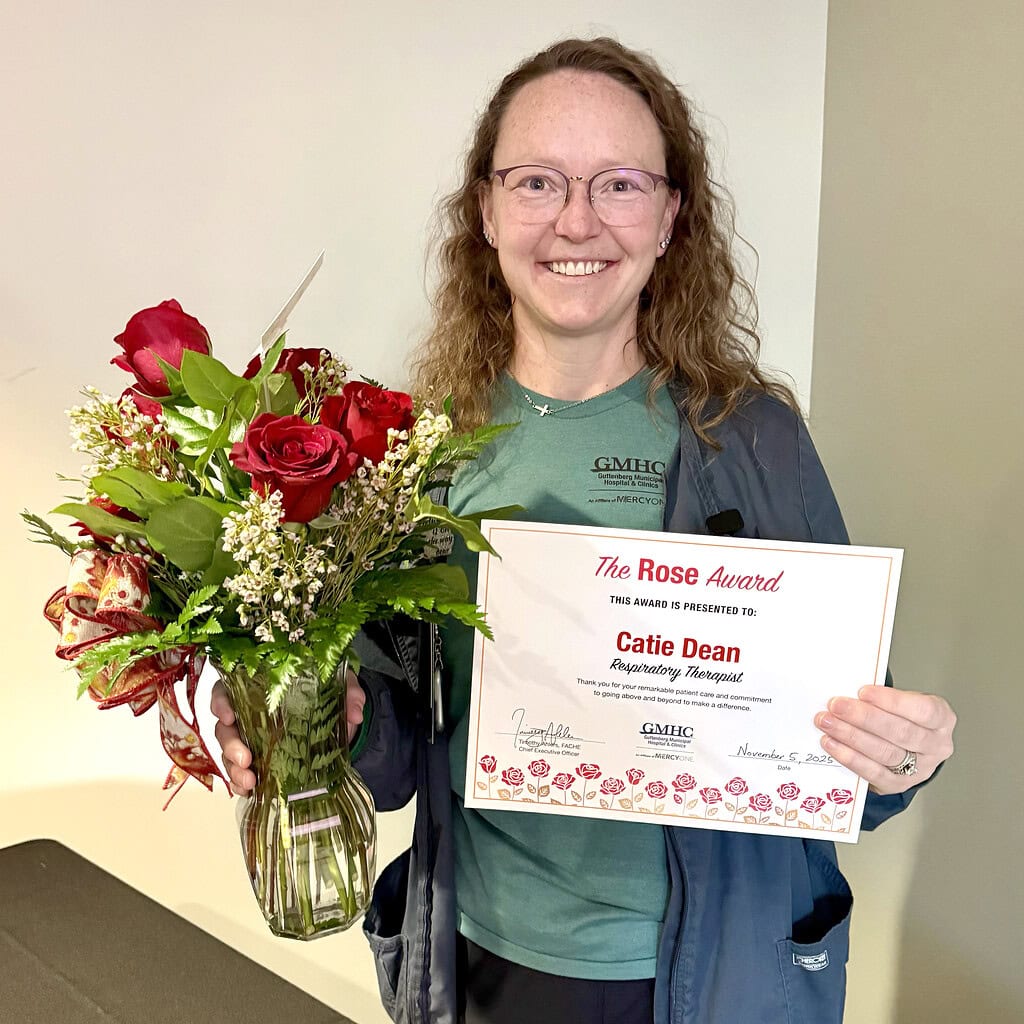 Guttenberg Municipal Hospital & Clinics (GMHC) is proud to recognize Respiratory Therapist, Catie Dean, as the recipient of the 1st Annual Rose Award. The Rose Award honors non-nursing healthcare professionals who demonstrate exceptional compassion, service, and dedication in support of patient care.